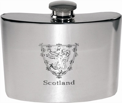 Kidney shaped flask with Lion of Scotland design, 6oz.