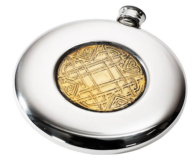 Sporran flask with brass celtic knotwork design, 4oz.